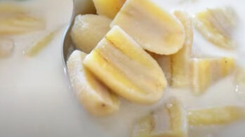 パートンコーの屋台などで別売りで置いてあるタイ風カスタードクリームです。卵、ココナッツミルク、パームシュガーなどを材料にしてカスタードクリームに仕上げます。一般的なカスタードの材料である牛乳の代わりにココナッツミルクを使うのがタイ風ですね。