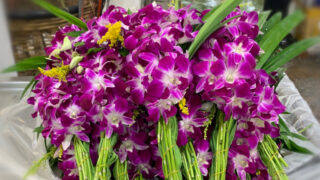 パーククローンタラートとは、チャオプラヤー川沿いにあるタイ最大の生花市場エリア。タイ国内産や輸入品を含む多種多様な花が小売/卸売問わず手頃な価格で手に入ります。周辺地区も含めるとたくさんの花屋があり、バンコクの観光名所の一つにもなっています。