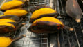 熟したクルアイハクムックなる品種のバナナを皮付きのままで炭火で焼くと香ばしい香りがし、皮が黒くなります。そして一筋の切れ目を入れると、黄金色の果肉が顔を出すのです。甘いココナッツミルクなどのソースは付けずに、そのまま食べます。